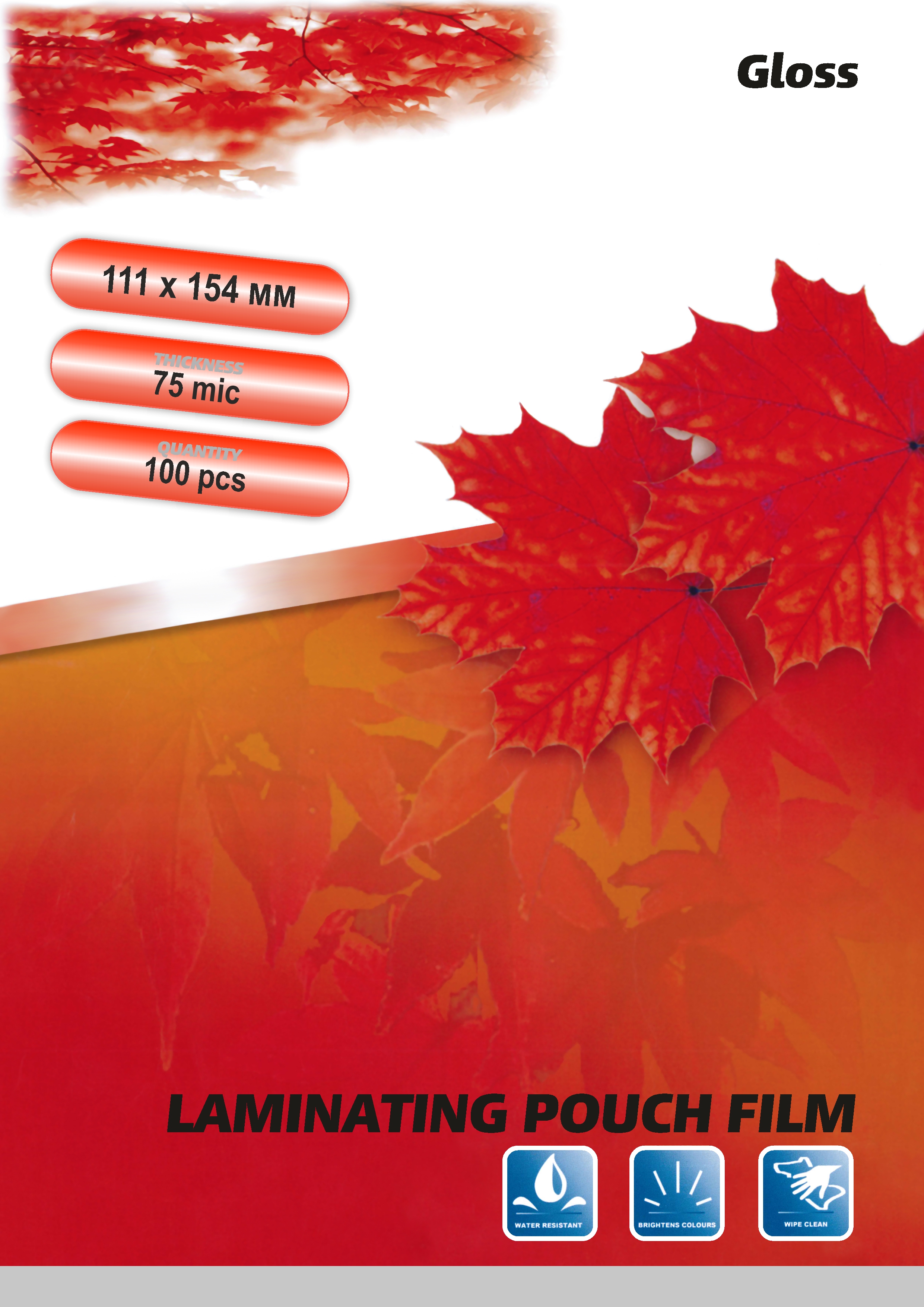 Пакетная пленка для ламинирования, глянцевая, 111x154мм (A6), 75мкм, LF