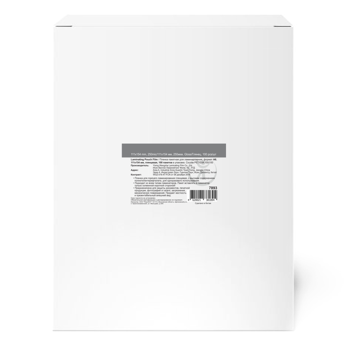 Пакетная пленка для ламинирования, глянцевая, 111x154мм (А6), 250мкм, WF