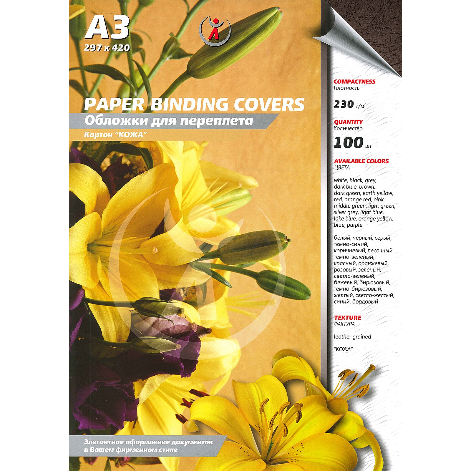 Обложки для переплета картонные, текстура кожа, 230г/м2, А3, коричневый