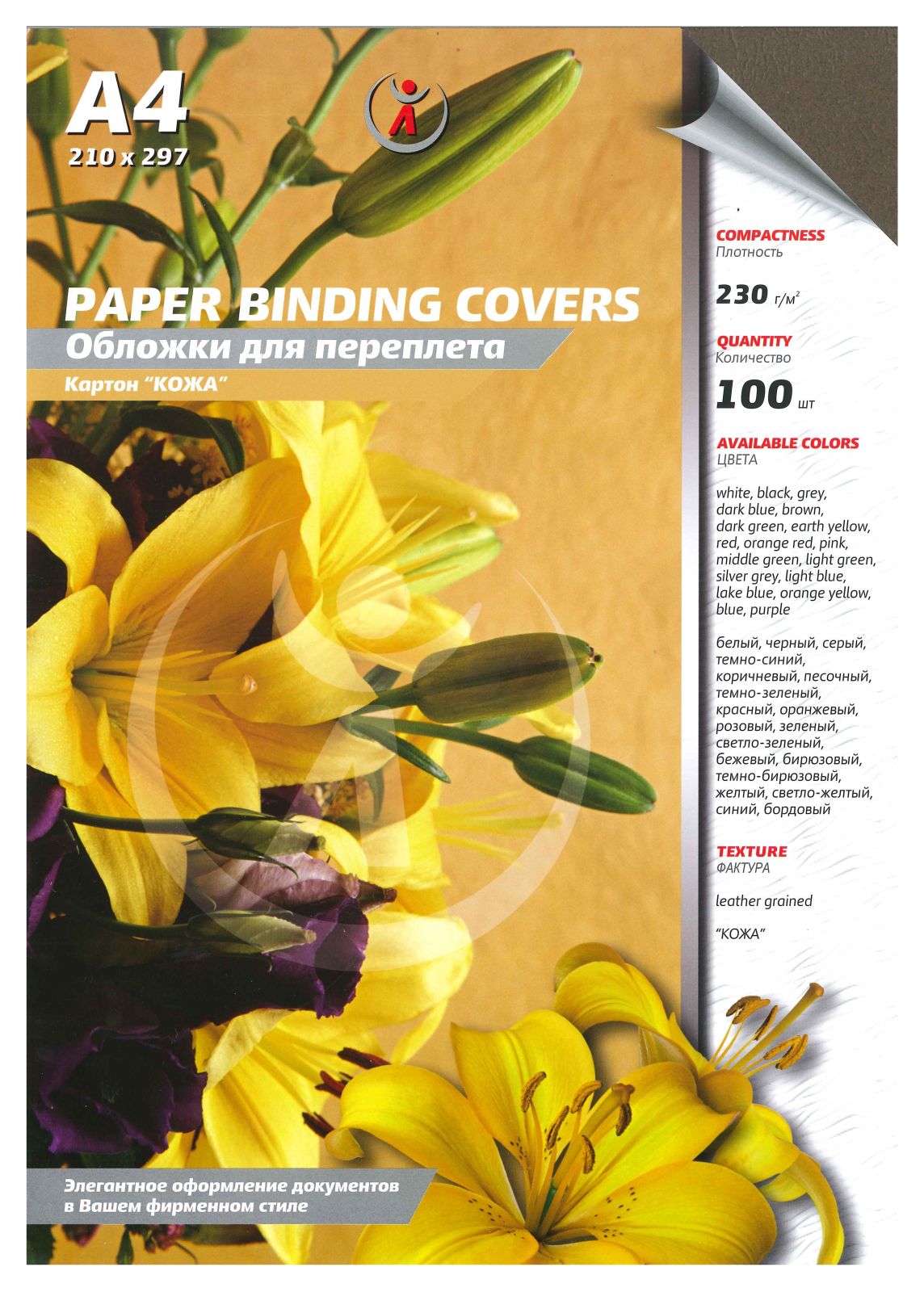 Обложка для переплета картонная используется при брошюровке документов чаще всего как нижняя обложка. Картонная обложка для переплета хорошо защищает страницы бумаги от пыли и грязи, придает документу более строгий и презентабельный вид. Поверхность обложки имитирует текстуру кожи , обложка шероховатая и приятная на ощупь, ее удобно держать в руках. Цвет обложки: Темно-коричневый (кофе). Обложка жесткая, ее плотность 230 г/м2. Формат обложек А4. В одной упаковке 100 штук обложек. Подходит ко всем типам брошюраторов и переплетных машин.