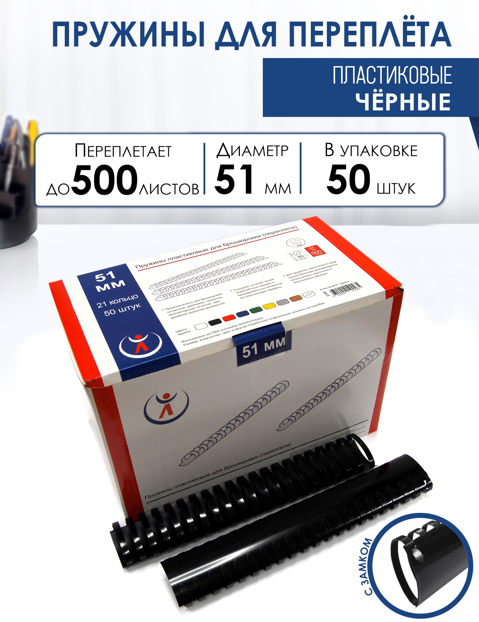 Пружины пластиковые диаметр 51мм, черные, для переплета или брошюровки - предназначены для быстрого и удобного переплета документов, каталог...