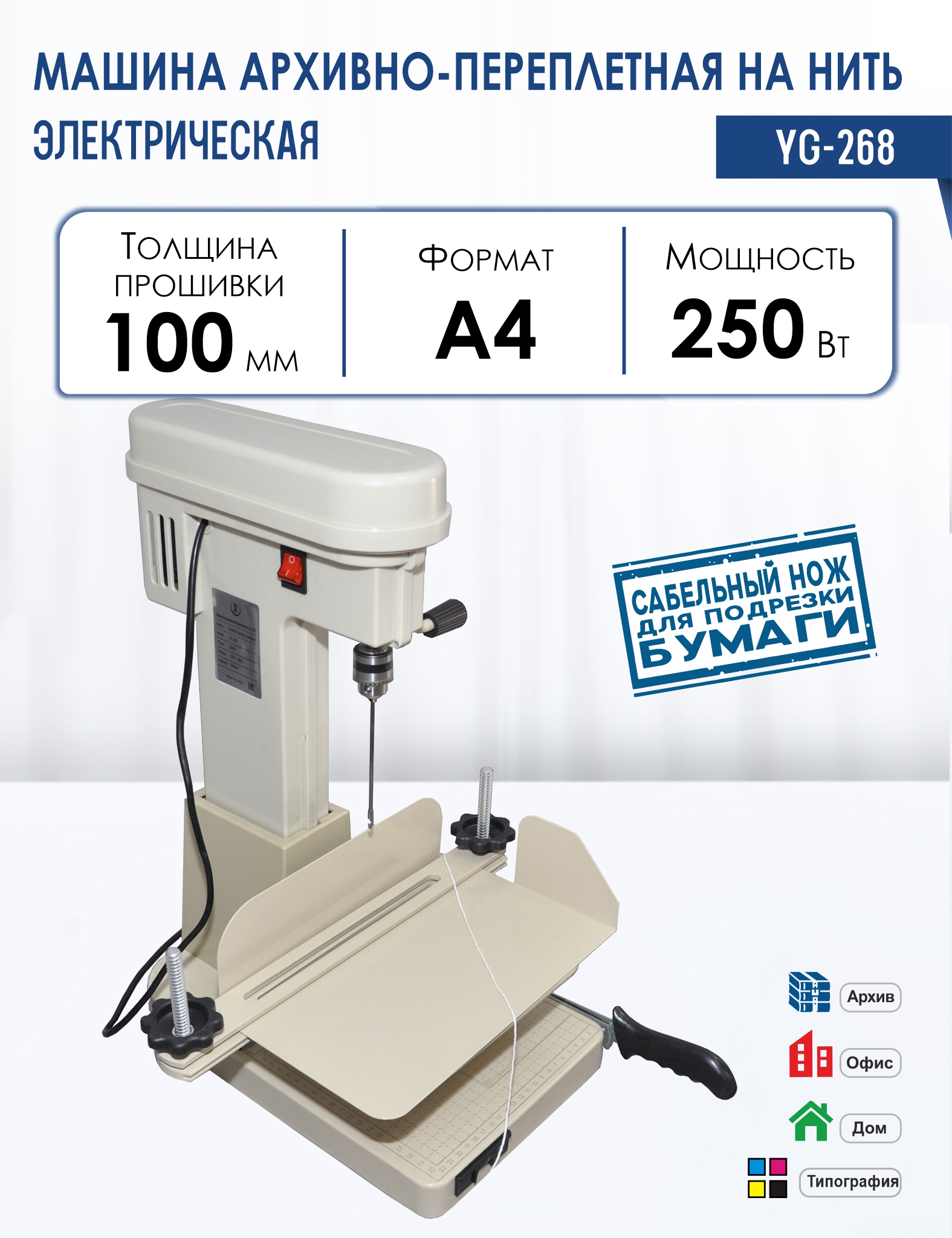 Архивно-переплетная машина на нить YG-268 предназначена для использования в архивах, бухгалтерии, библиотеке и в личных целях для подшивки документов, курсовых, журналов.