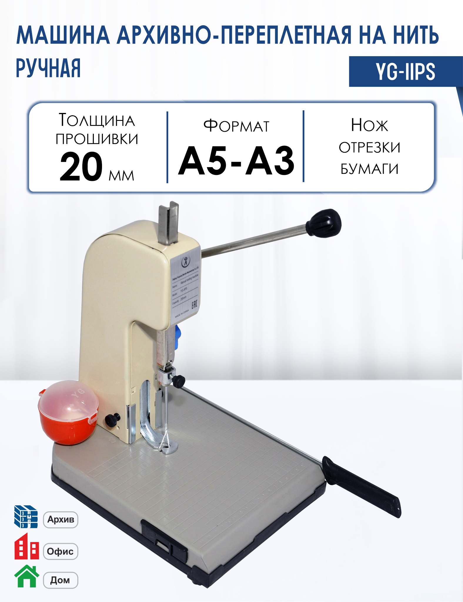 Архивно-переплетная машина на нить YG-IIPS в основном используется там где не требуется прошивка большой стопы документов, поскольку является ручной машинкой. Как правило, в бухгалтериях, нотариальных конторах, библиотеках, или в личных целях: подшивки договоров, курсовых, газет, журналов.