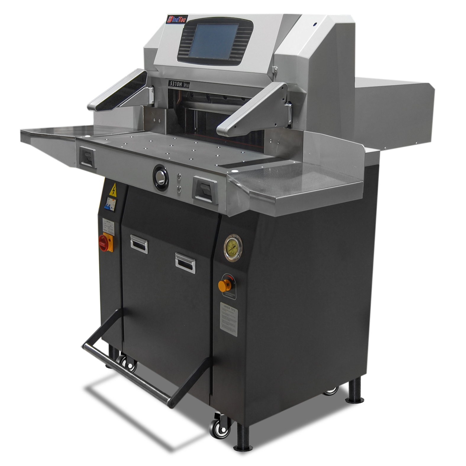 BindTec 5310H - это профессиональная модель электрической гидравлической гильотины. Основное отличие гидравлической гильотины от других - в том, что электронасосом из специальной емкости масло нагнетается в гидравлическую систему резака (гидроцилиндры). Благодаря такой схеме можно менять в широких пределах усилие прижима стопы бумаги, силу реза и обеспечить постоянную линейную скорость перемещения ножа.