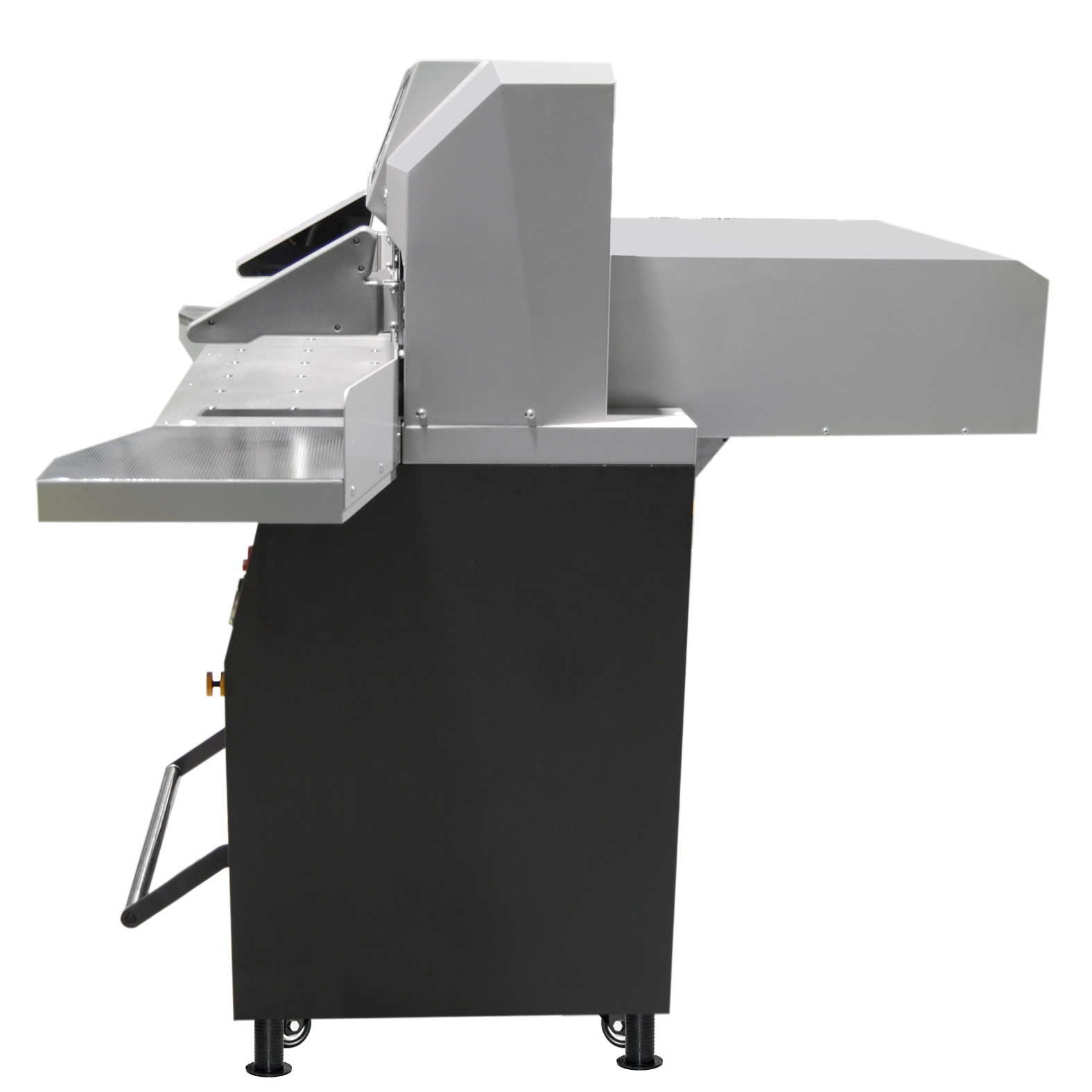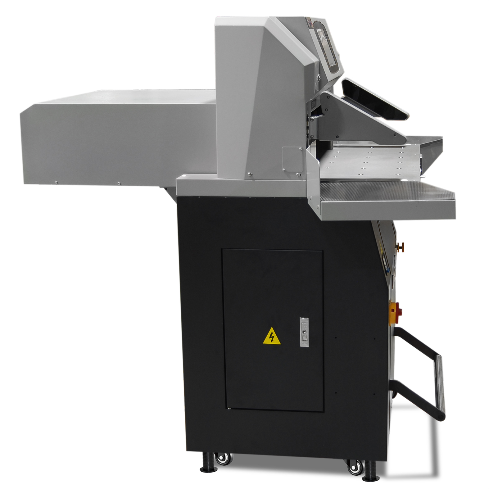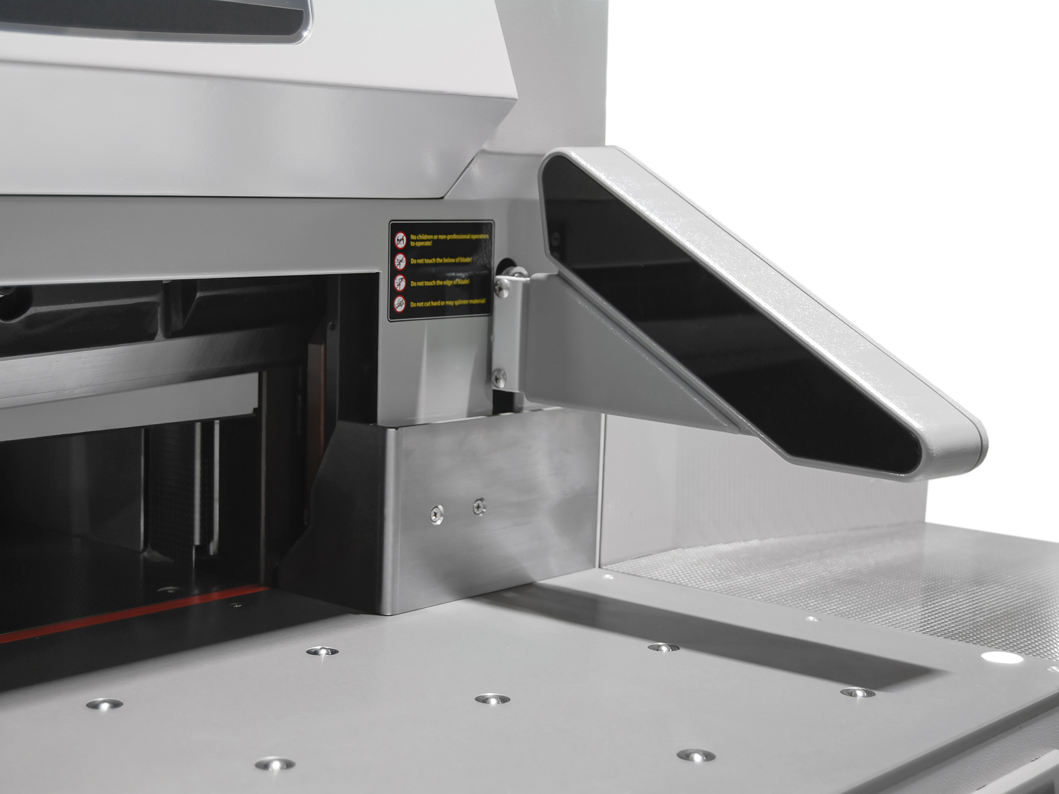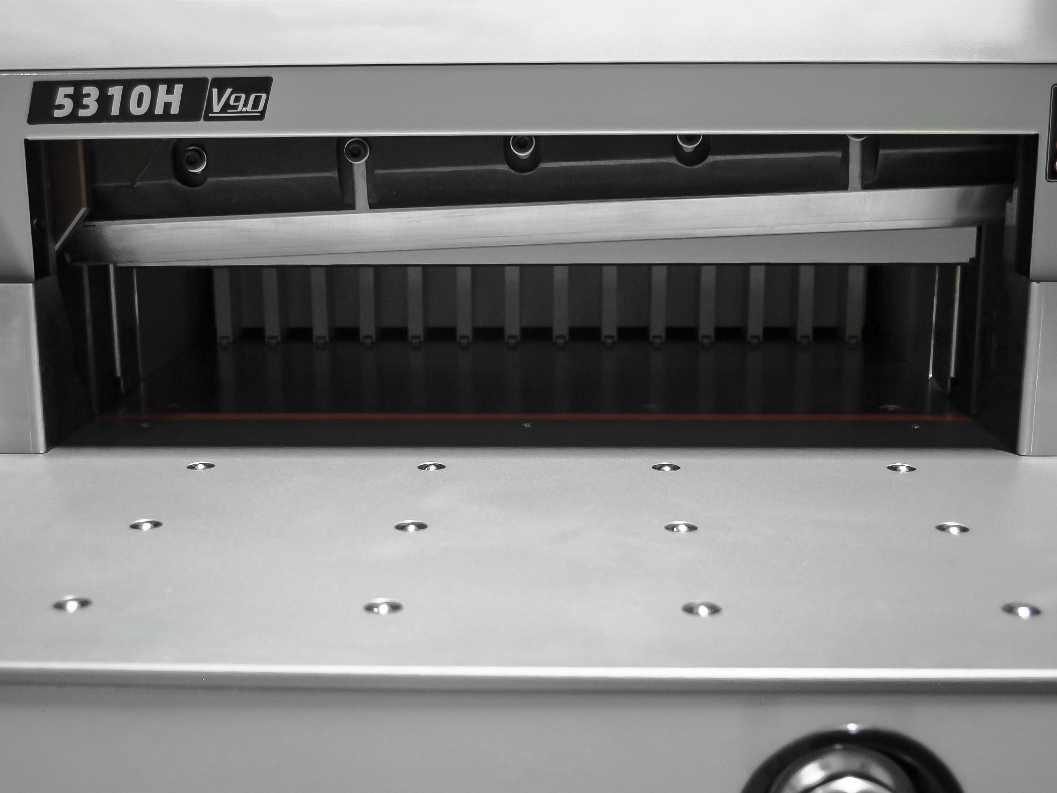 BindTec 5310H предназначена для малых и средних типографий с большим объемом работ. Эта модель оснащается расширенным рабочим столом для удобства работы со стопой бумаги, причем расширение рабочего стола - это две детали из металла без какой-либо электроники, то есть вы можете использовать их или не использовать, при этом не надо переподсоединять системы защиты рук оператора, что долго, и требует определенных знаний и умений.