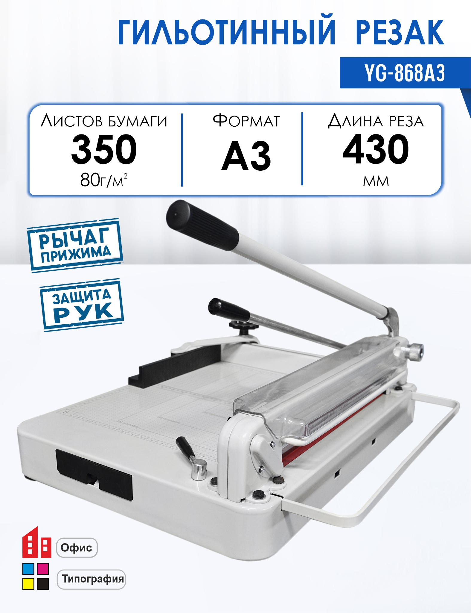 Настольный резак гильотиного типа YG-868A3 с цельным металлическим корпусом и длиной реза до 430 мм (формат А3) – оптимальное решение для...
