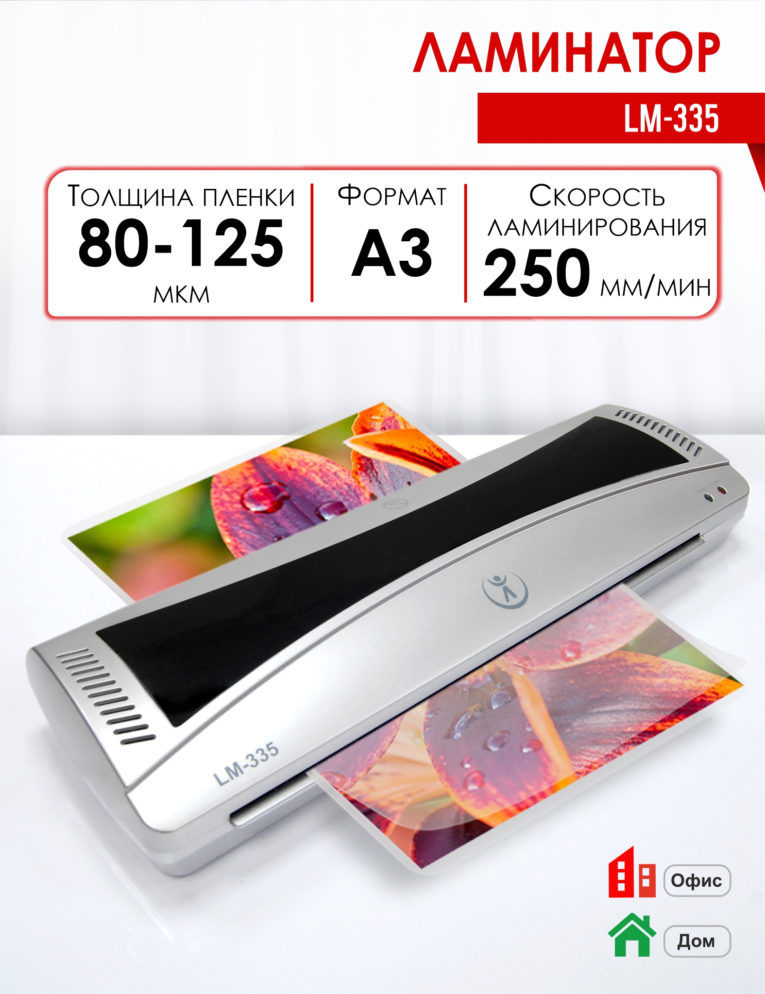 LM-335 - недорогой и простой в работе ламинатор формата А3. Предназначен в основном для ламинирования объявлений, указателей, меню, пропусков, бэджей и другой печатной продукции. Отличный выбор для дома, офисов и организаций с небольшим объемом работ.