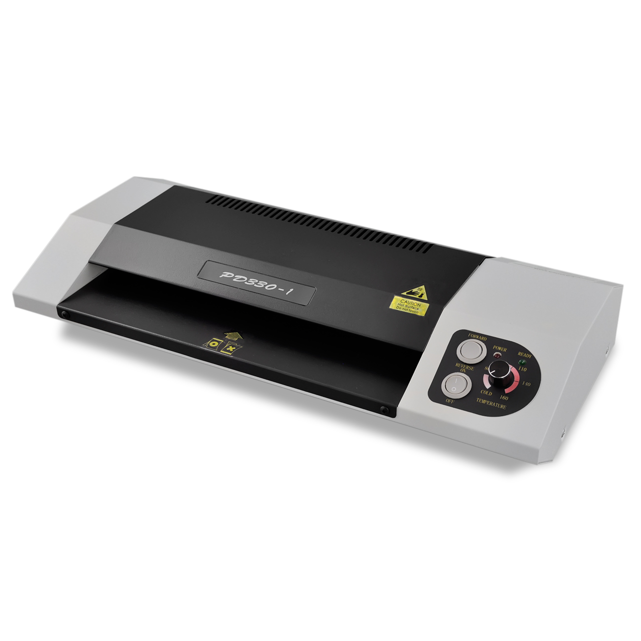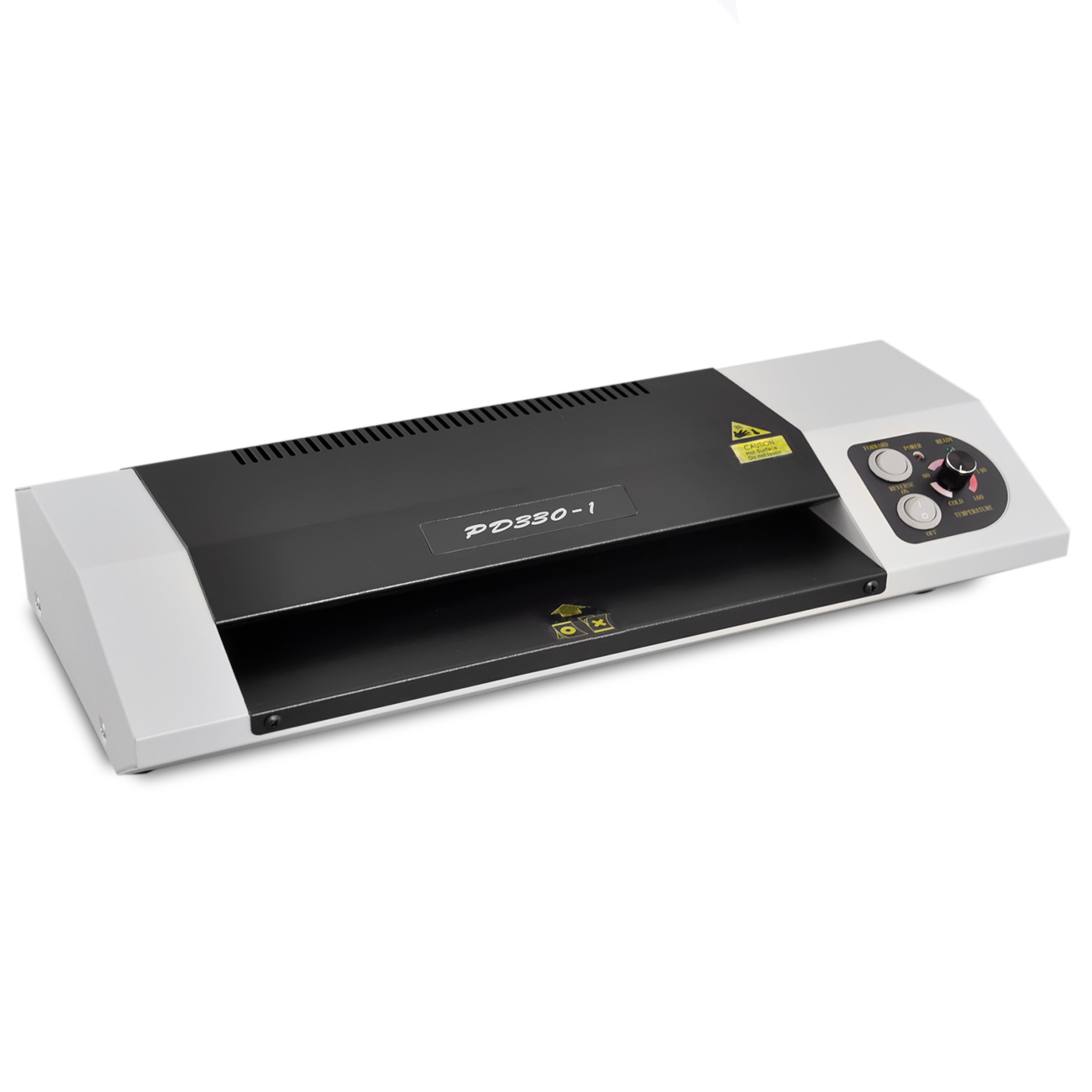 PD330-1 - пакетный ламинатор от компании PingDa. Предназначен для ламинирования печатной продукции до формата А3 включительно. Регулировка температуры, реверс, металлический корпус, четыре вала (два из них с внешним нагревом), горячее и холодное ламинирование, работает со всеми толщинами пленок. Предназначен для офисов и организаций со средним объемом работ.