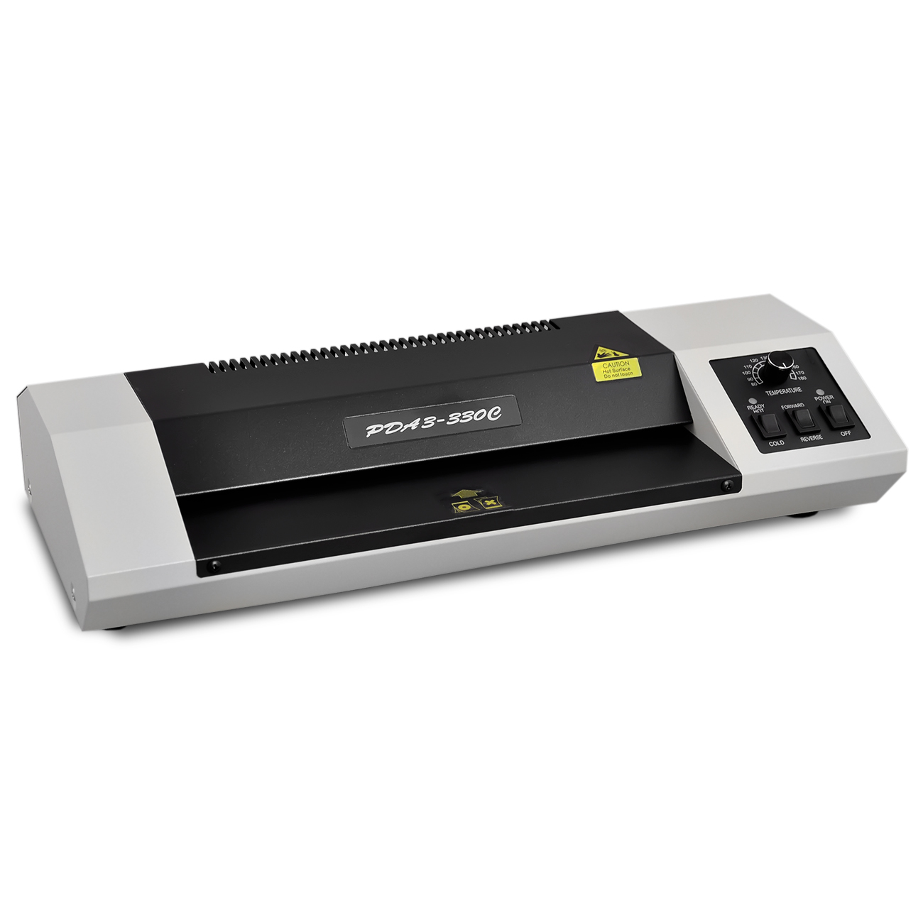 PDA3-330С - полупрофессиональная пакетный ламинатор для организаций со средним объемом работ от компании PingDa. Используется для ламинирования продукции до формата А3 включительно. Регулировка температуры, реверс, металлический корпус, четыре вала (два из них с внешним нагревом), горячее и холодное ламинирование, работает со всеми толщинами пленок.