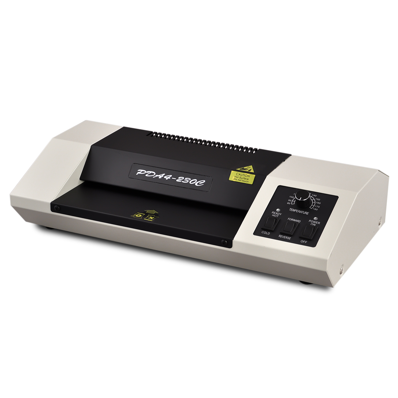 PDA4-230С - пакетный ламинатор от компании PingDa. Предназначен для ламинирования печатной продукции до формата А4 включительно. Регулировка температуры, реверс, металлический корпус, четыре вала (два из них с внешним нагревом), горячее и холодное ламинирование, работает со всеми толщинами пленок. Отличается от модели PD230-1 более высокой температурой нагрева. Это полупрофессиональная модель для организаций со средним объемом работ.
