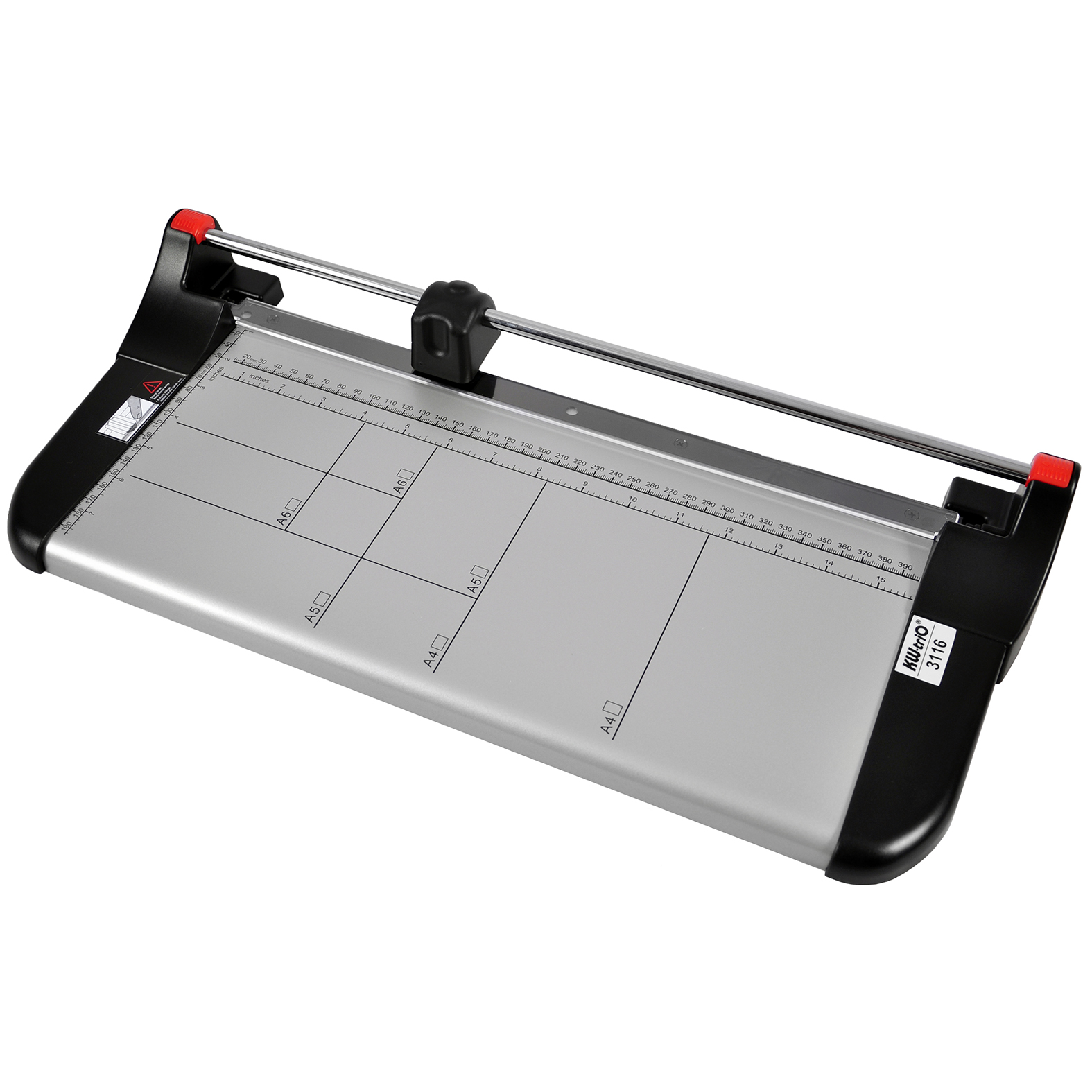 KW-triO 3116 (или KW-triO 13116) - компактный роликовый резак В4 формата от компании KW-triO. Недорогая модель с металлическим столом, удобной разметкой и автоматическим прижимом стопы бумаги во время реза для максимального удобства. Для офисов и организаций с небольшим объемом работ.