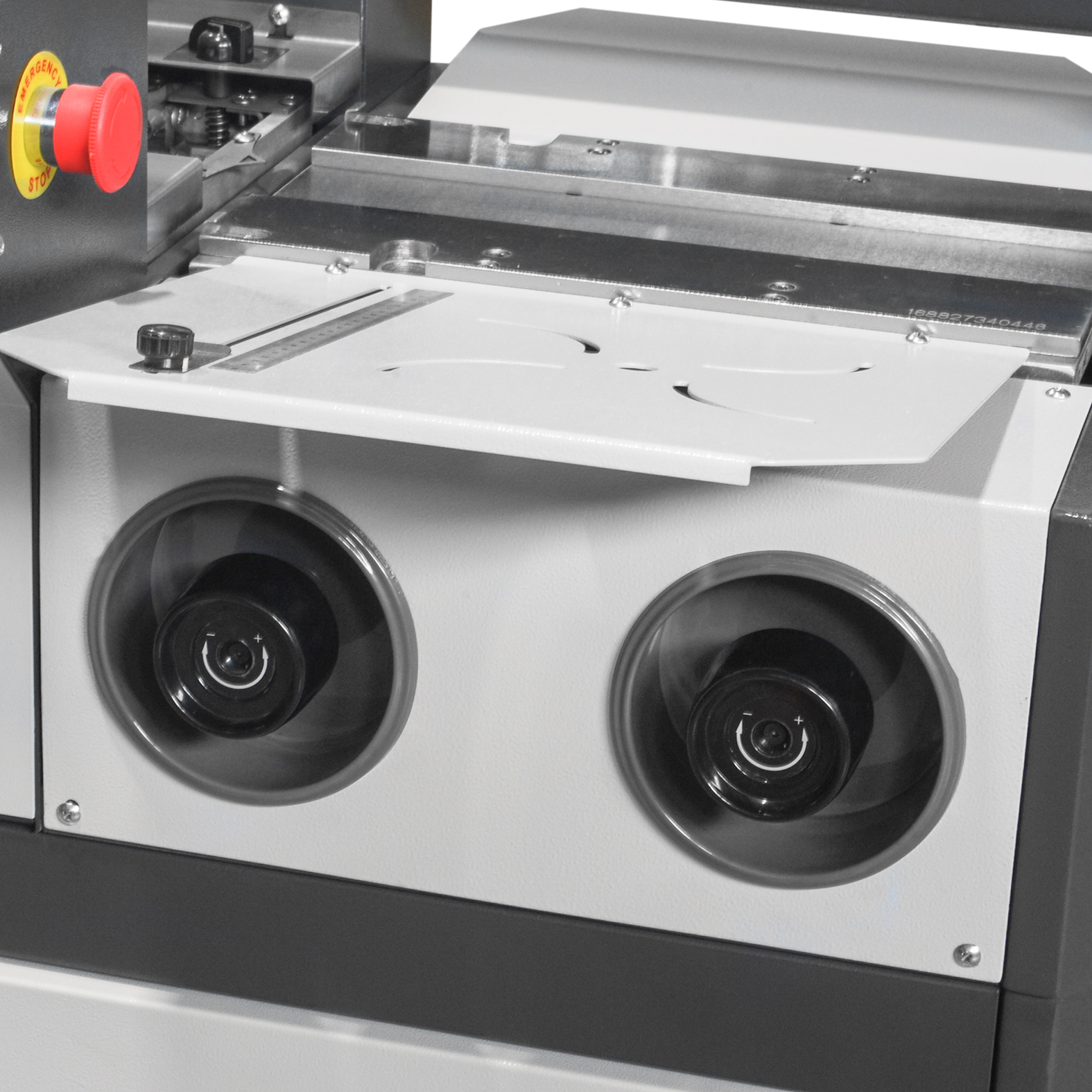 - Бумажная пыль от фрезерования и тошонирования собирается в мешок специальным вентилятором, благодаря чему не смешивается с клеем и не ухудшает качества проклейки;