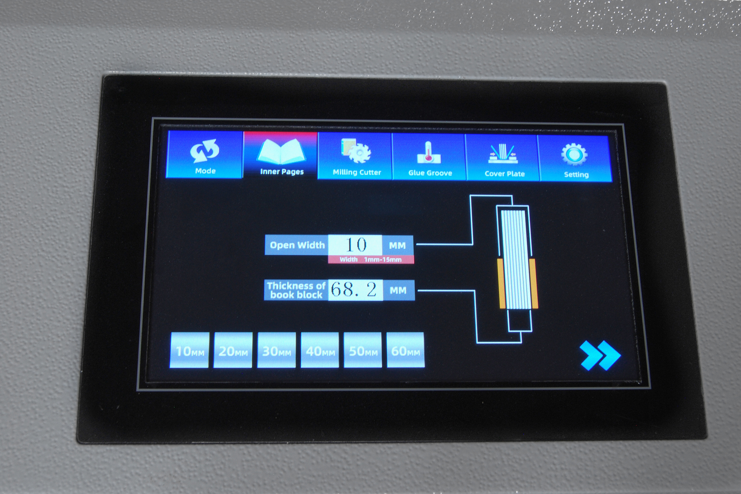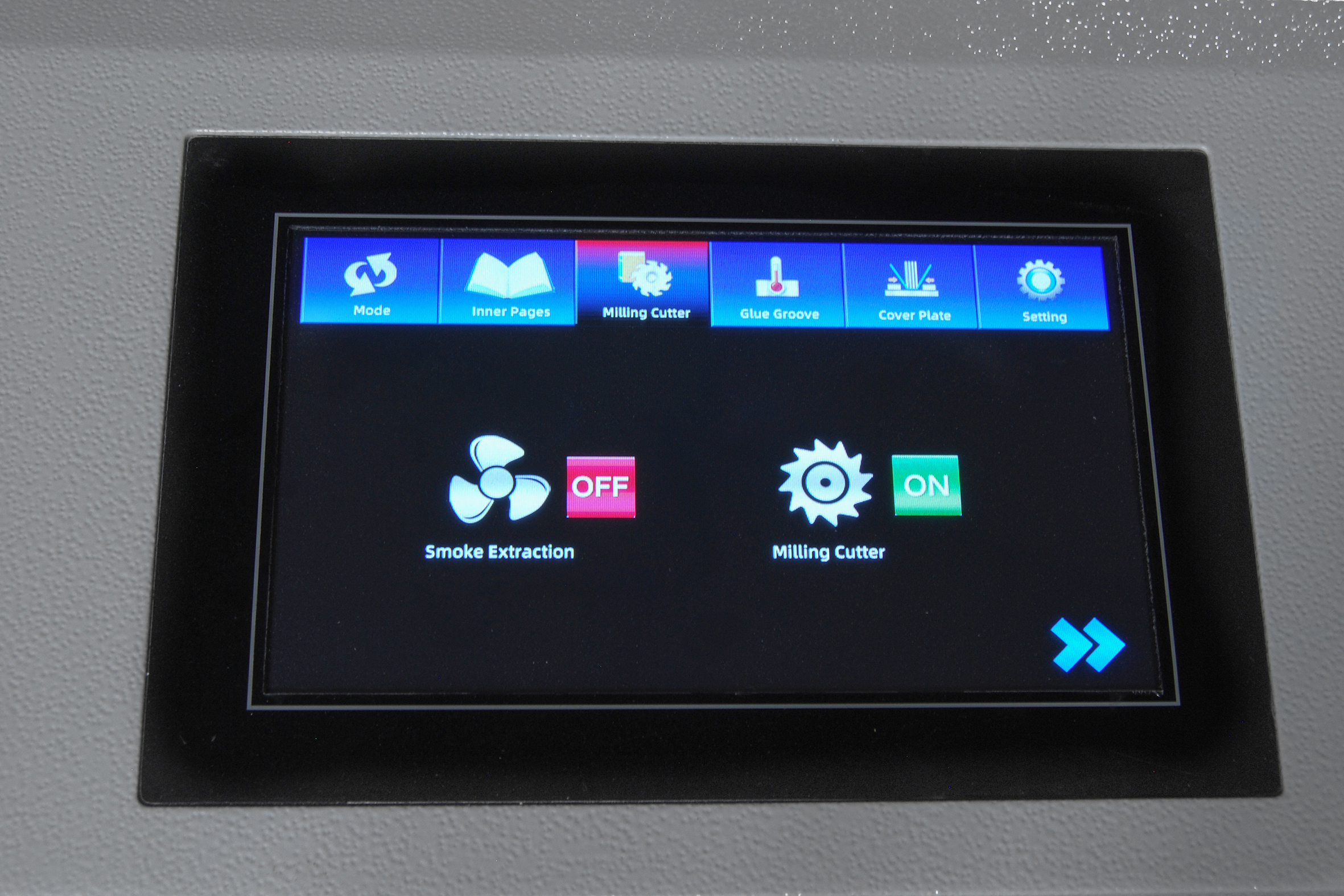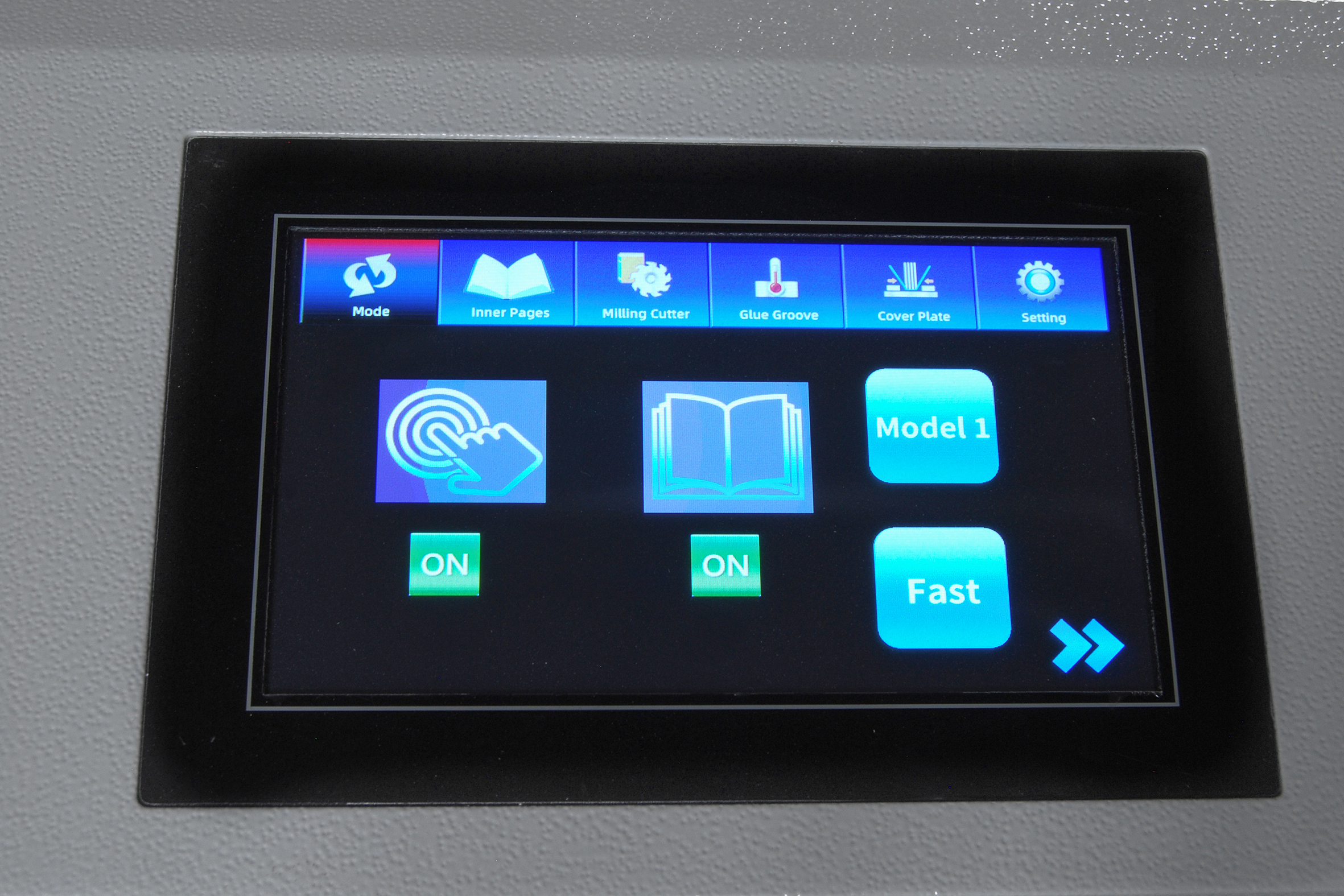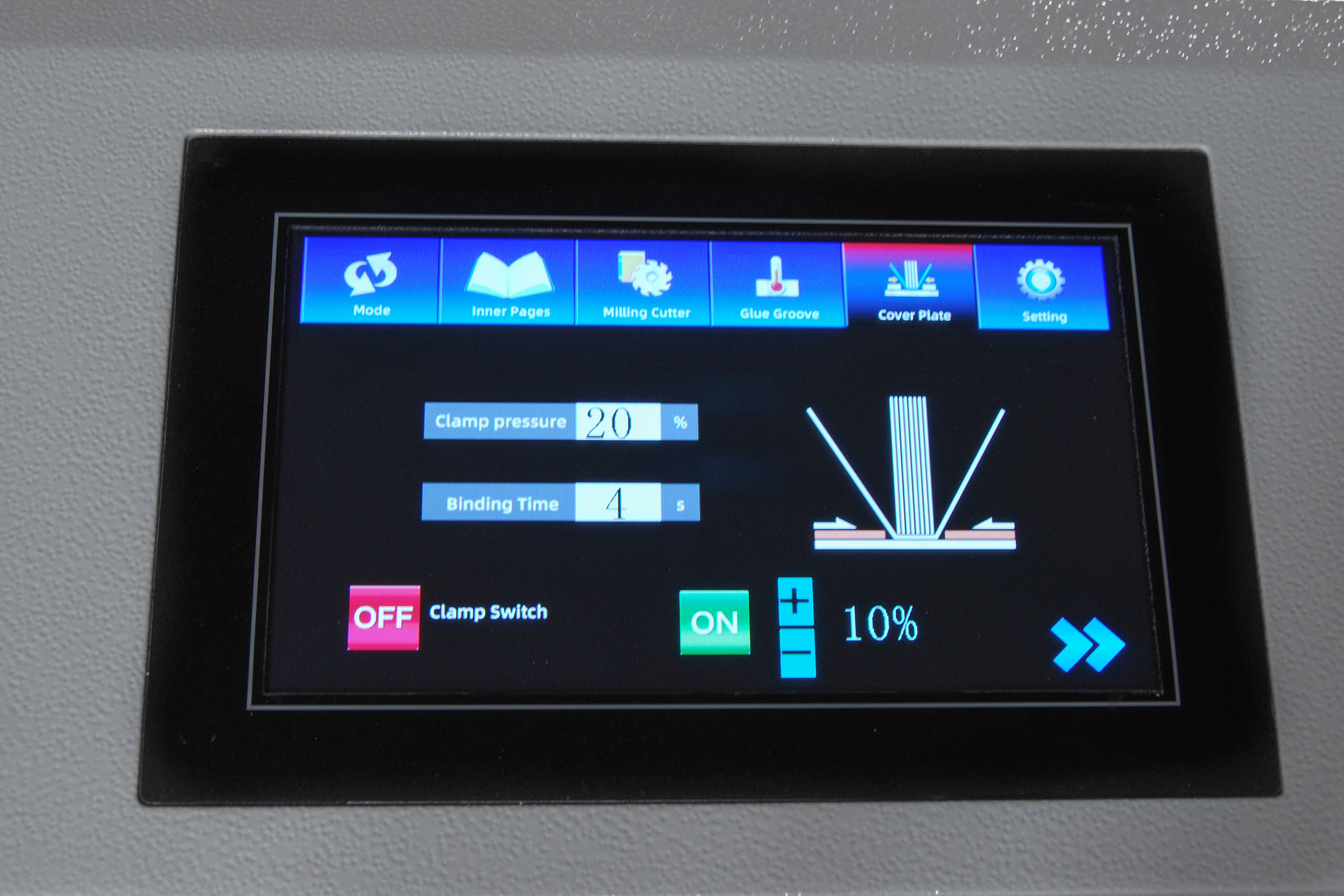 - Неравномерность приклеивания обложки можно быстро отрегулировать с помощью поворота двух рукояток справа;