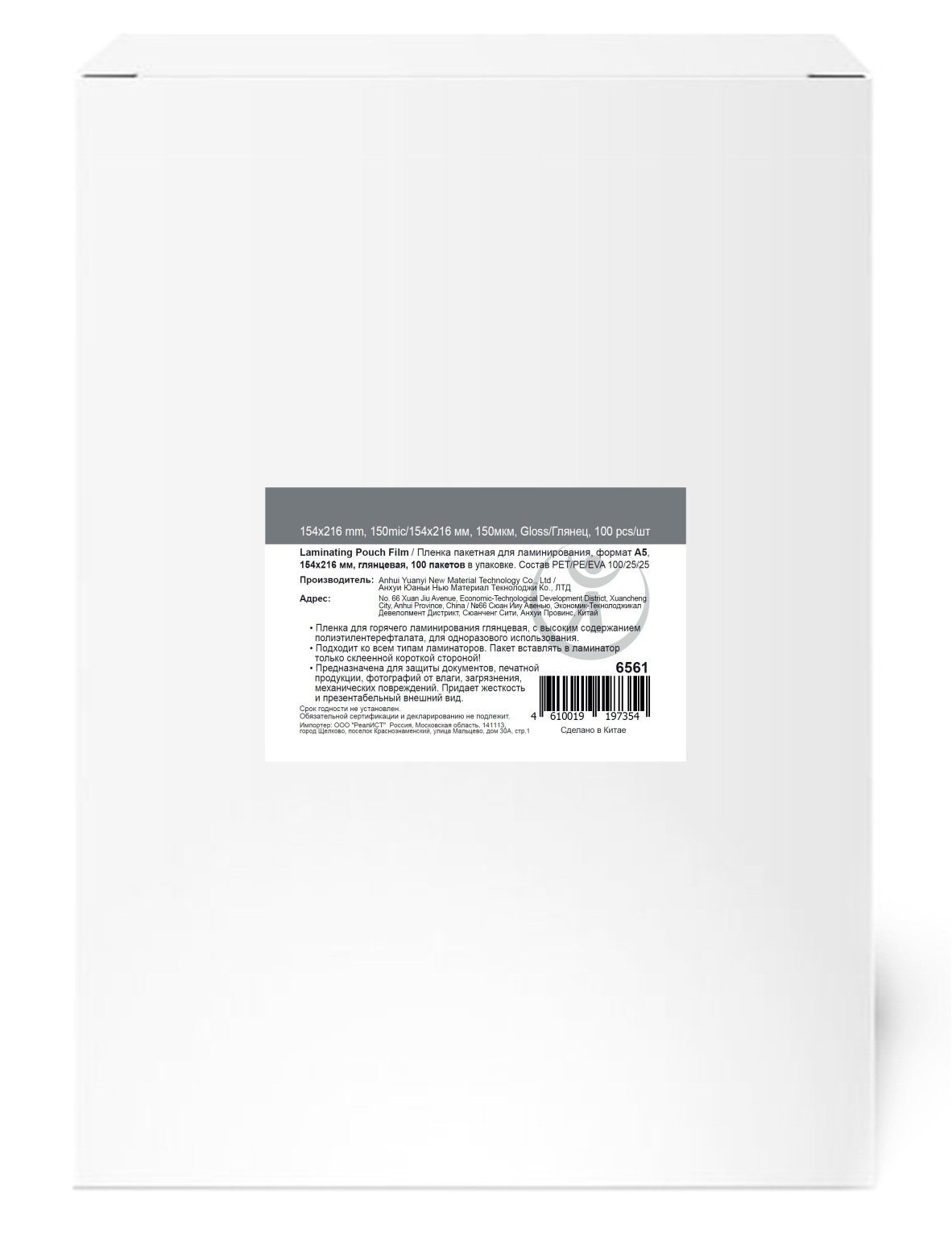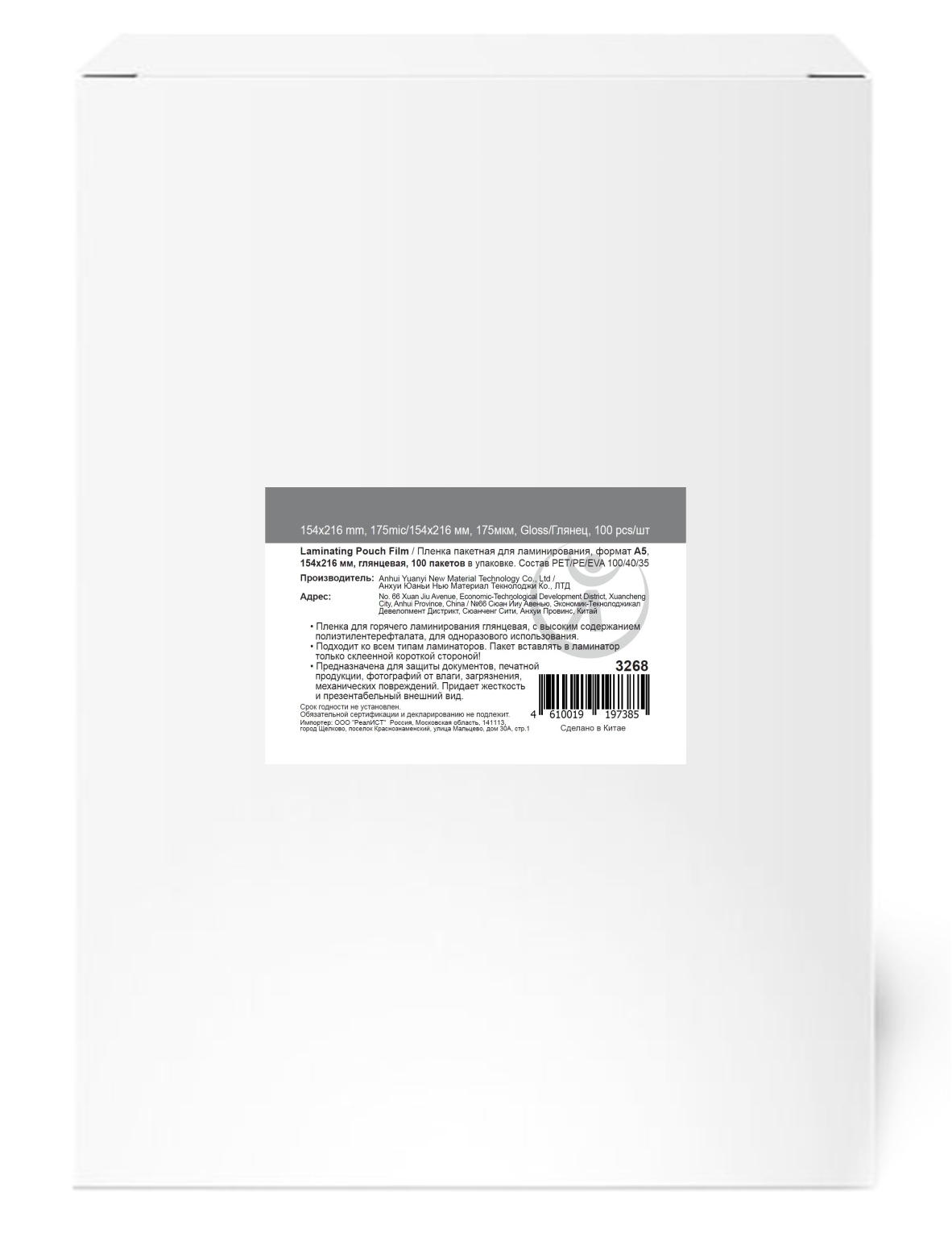 Пленка для ламинирования А5 (пакетная)